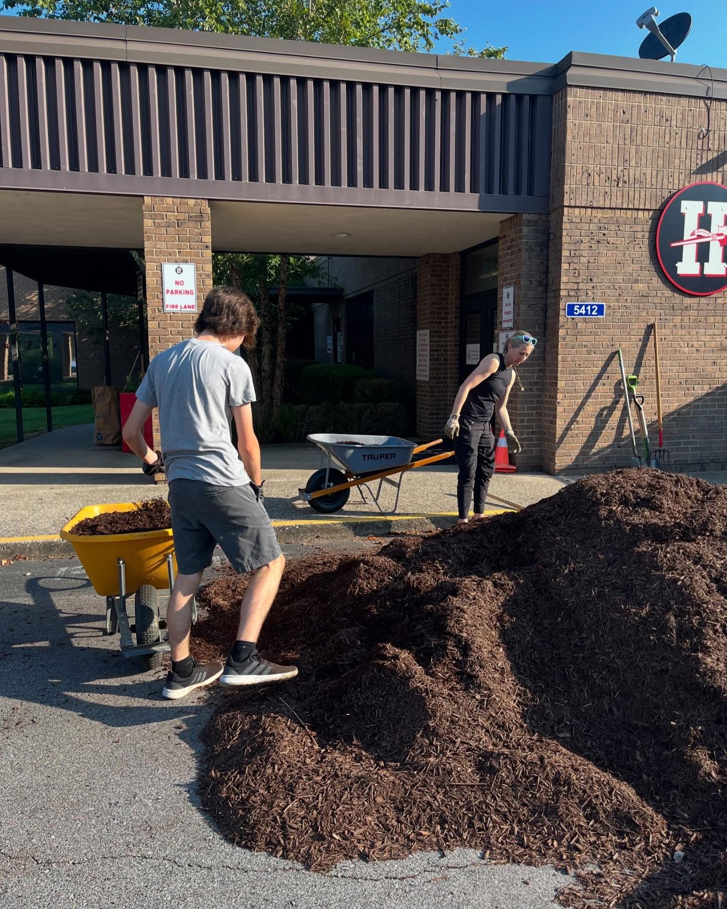 The project was split into two parts and carried out over two days. The first day, taking place on August 4, involved the efforts of several other scouts in my troop with some of my family coming over to help out. We removed weeds, cut branches, filled in every flowerbed with a truckload of new mulch, and replaced flowers in the many flowerpots near the entrance.